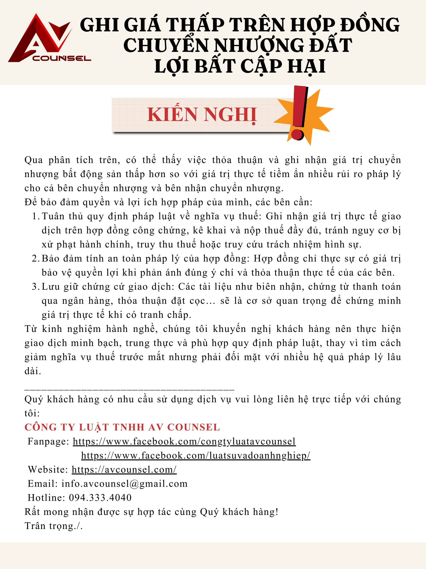 GHI GIÁ THẤP TRÊN HỢP ĐỒNG CHUYỂN NHƯỢNG ĐẤT - LỢI BẤT CẬP HẠI